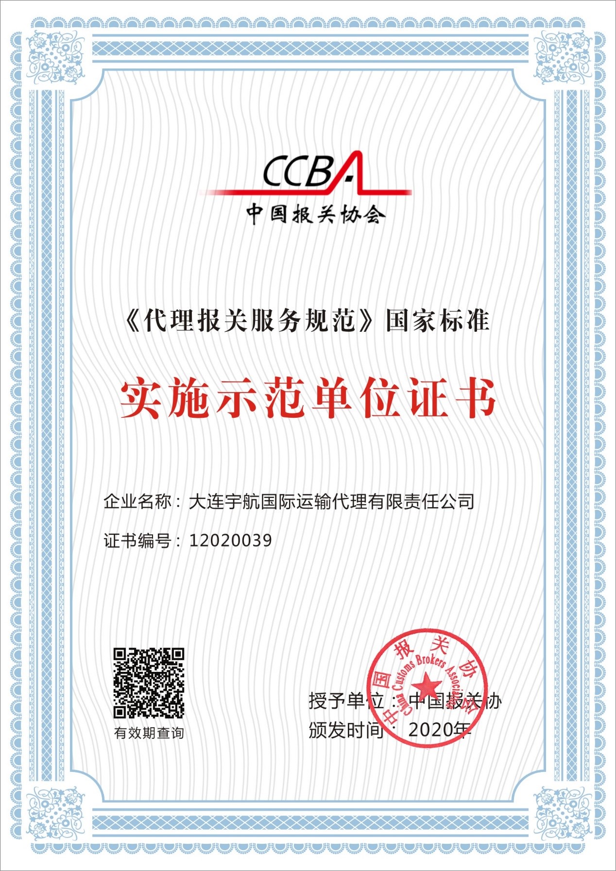 2020年6月,大连宇航国际运输代理有限责任公司荣获中国报关协会首批《代理报关服务规范》国家标准实施示范单位。作为大连关区的上榜企业之一,衷心感谢中国报关协会与大连报关协会对大连宇航的认可,也感谢各位客户伙伴与合作伙伴一直的信任与支持。